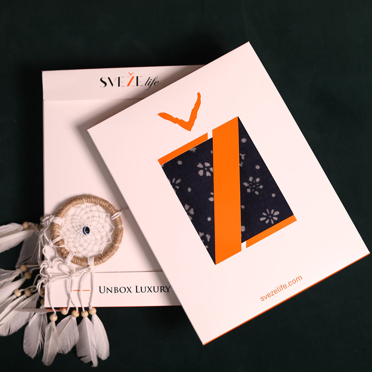 Quietly elegant and thoughtfully detailed, the Indigo Bloom Wool Scarf is woven in deep indigo tones and scattered with delicate, floral-inspired motifs. Subtle patterning runs throughout the body of the scarf, finishing with a softly contrasting border that adds depth without overpowering the design.