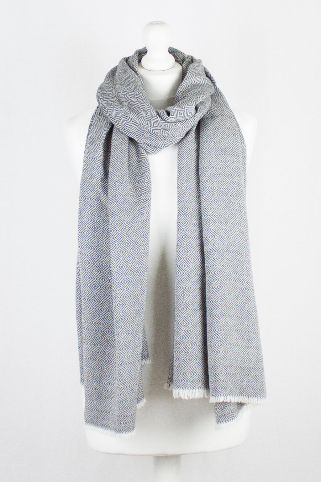 Alpine Merino Diamond Weave Two Tone Wool Scarf - Grey