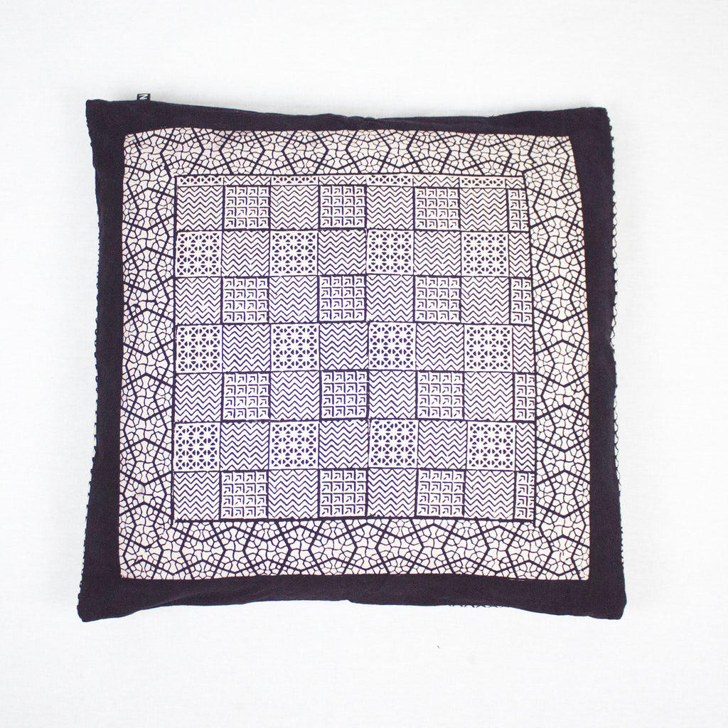 Ajrakh Hand-block Print Star Flower Cushion Cover - Blue Off-White